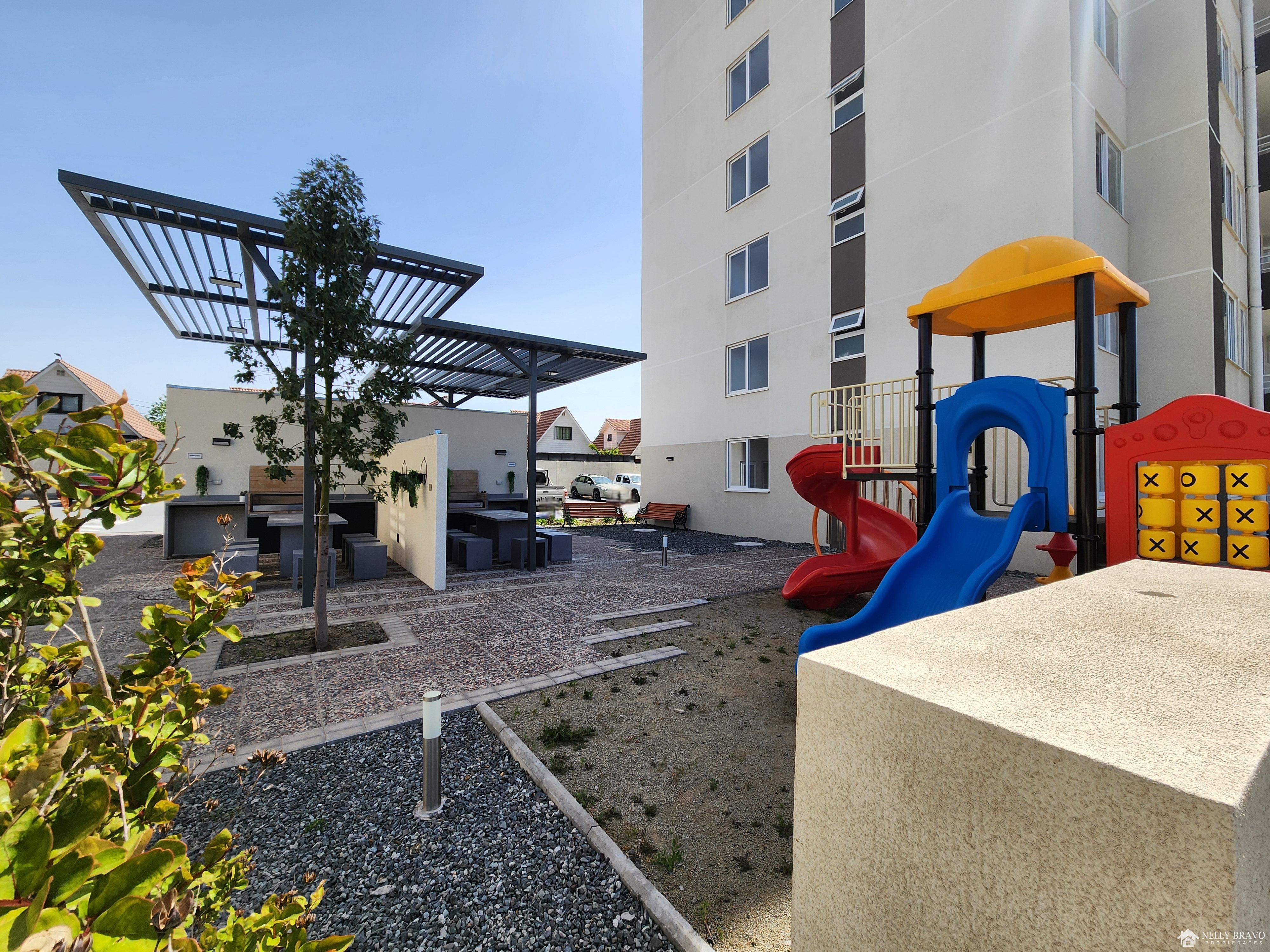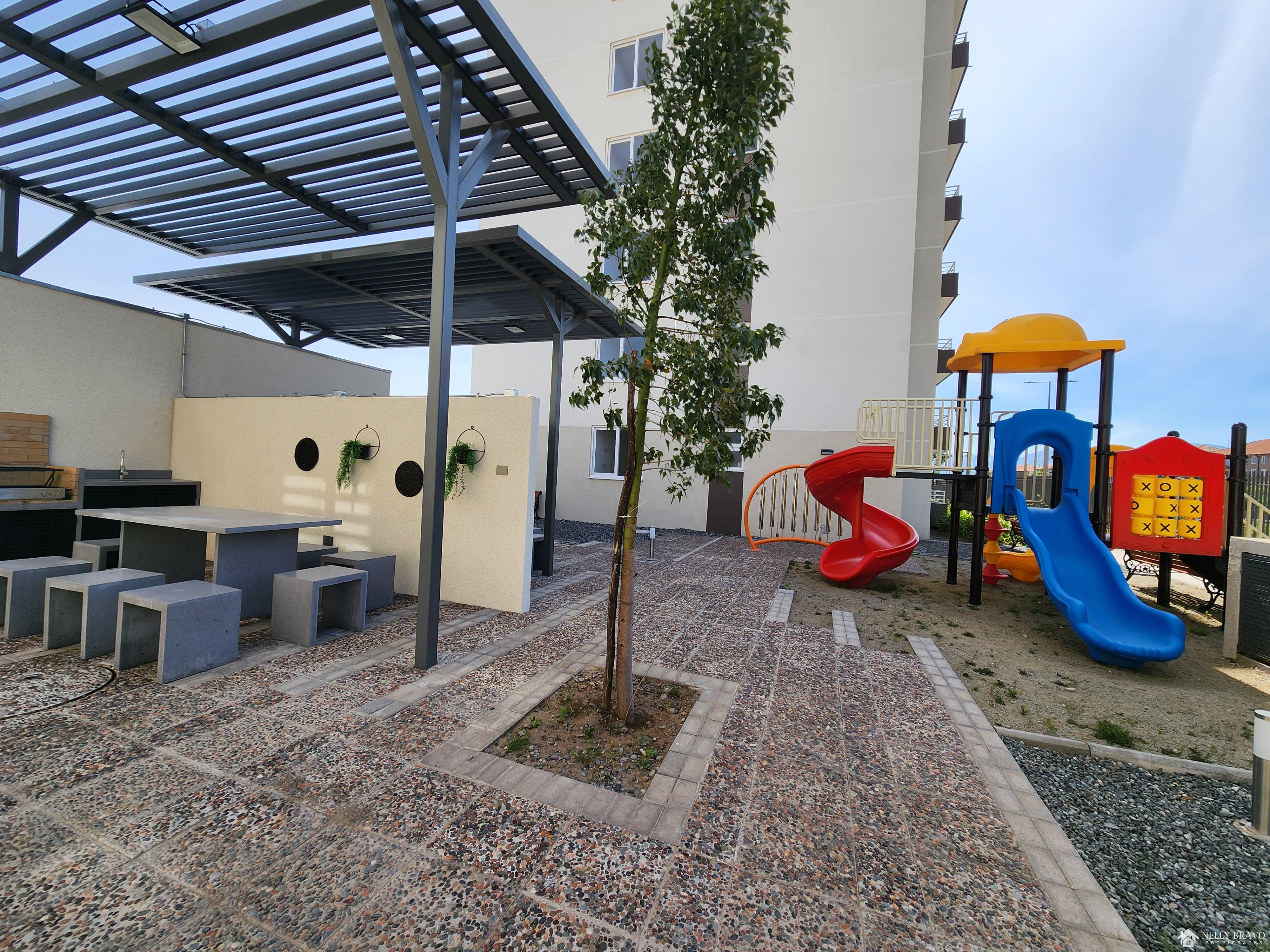 Acogedor y amplio departamento NUEVO en un 7° piso, concepto abierto, con conectividad a Ruta 5 sur y Avenida Las Torres, cerca de Supermercados, a minutos del centro de Rancagua. El Edificio cuenta con conserjería 24/7, áreas verdes, citofonía, estacionamiento de visitas, ascensores, piscina, quinchos, sala enfermería, juegos infantiles, acceso controlado por reconocimiento facial.